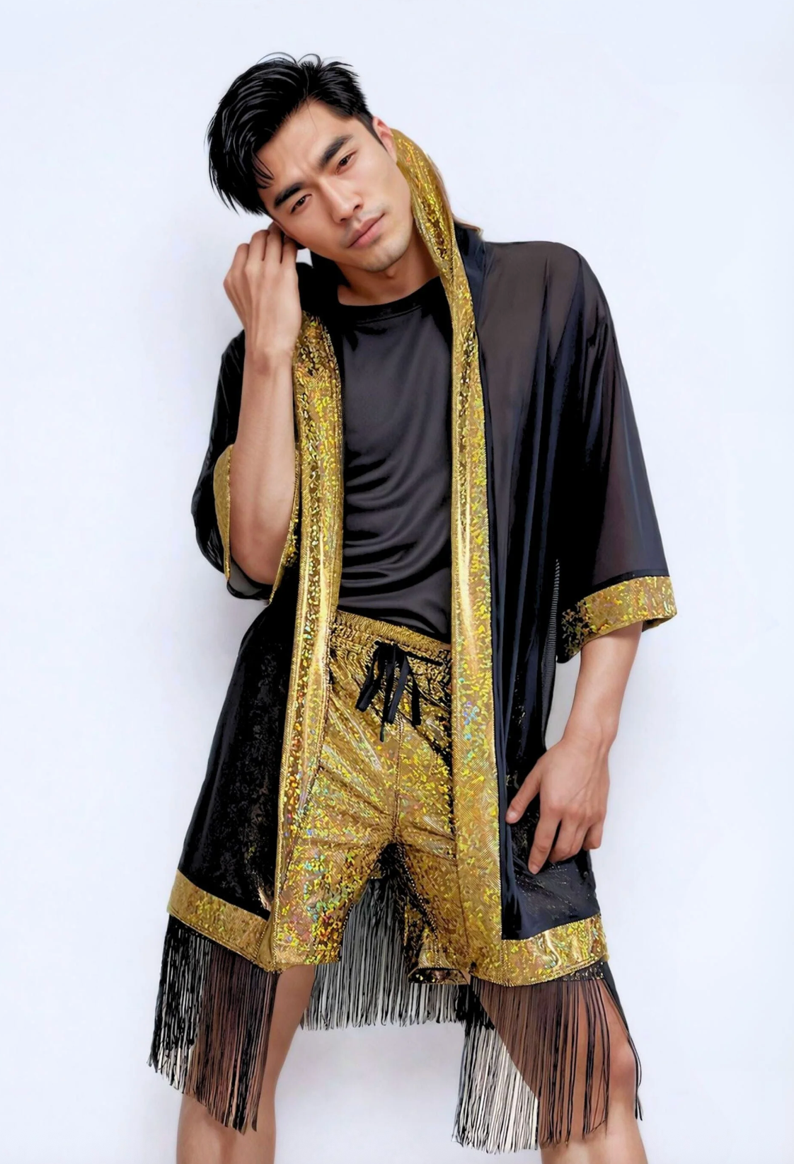 Cosmic Drifter Mesh Kimono Black/Solar Flare