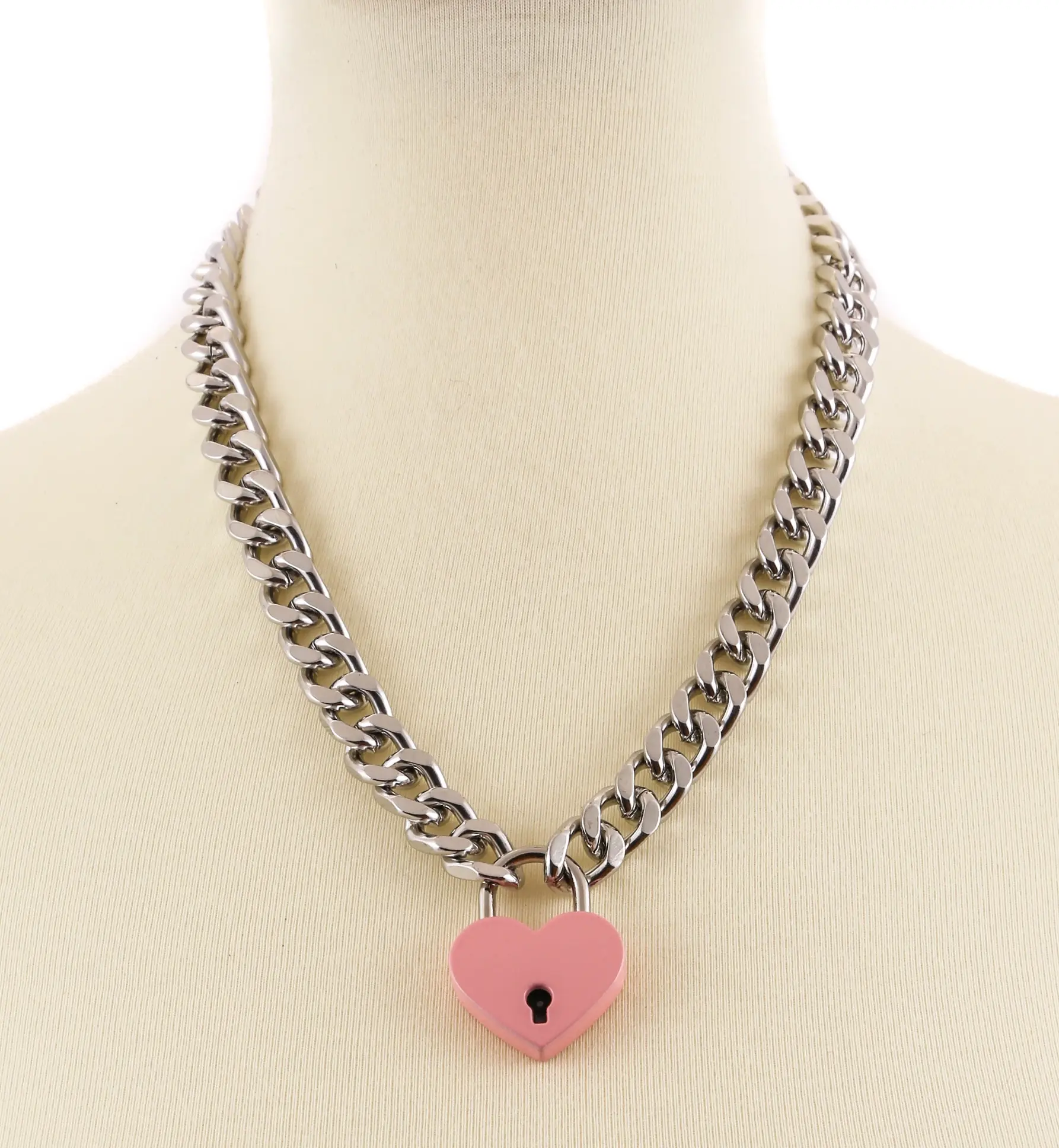 Cuban Chain Heart Padlock Necklace Pink