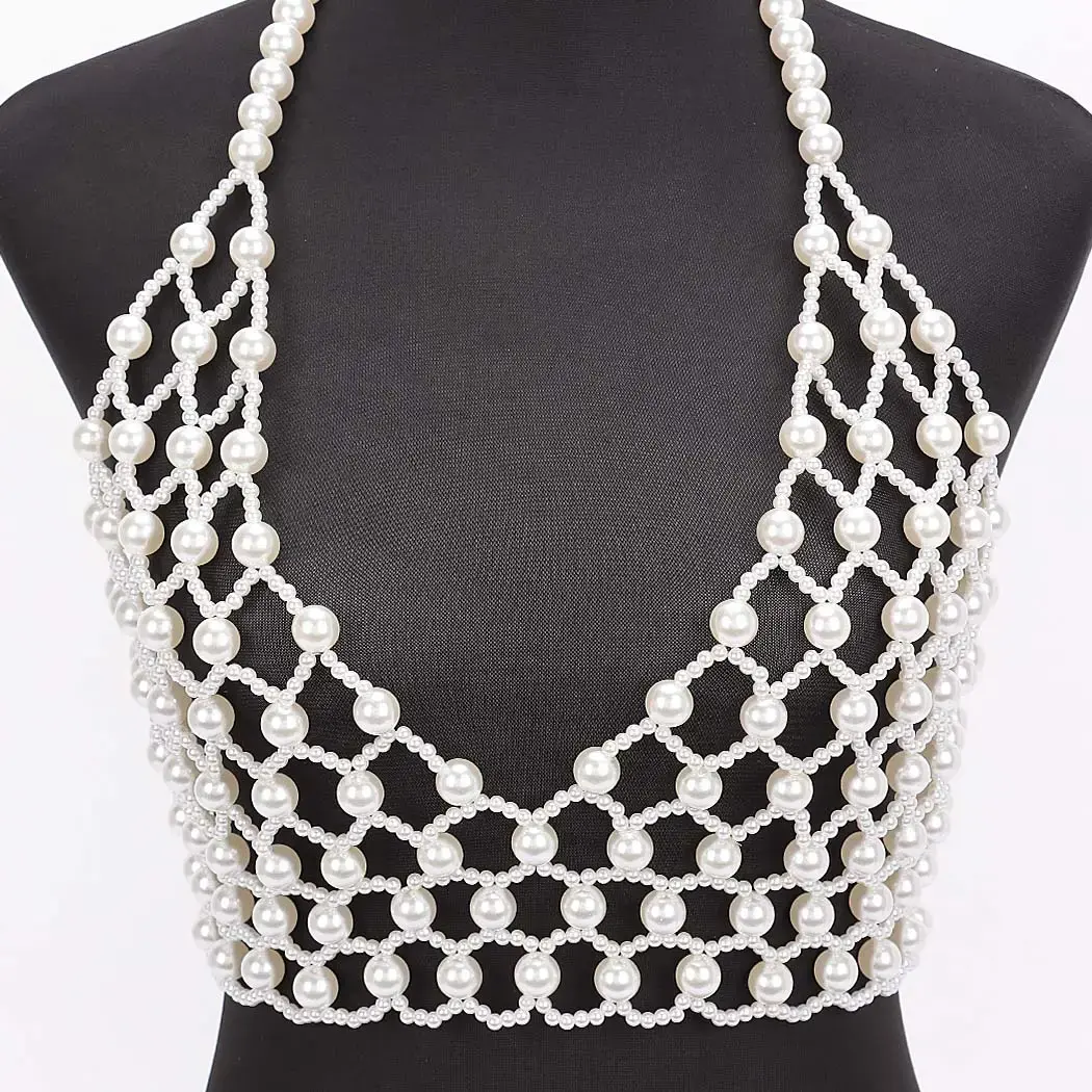 Faux Pearl Halter Neck Top