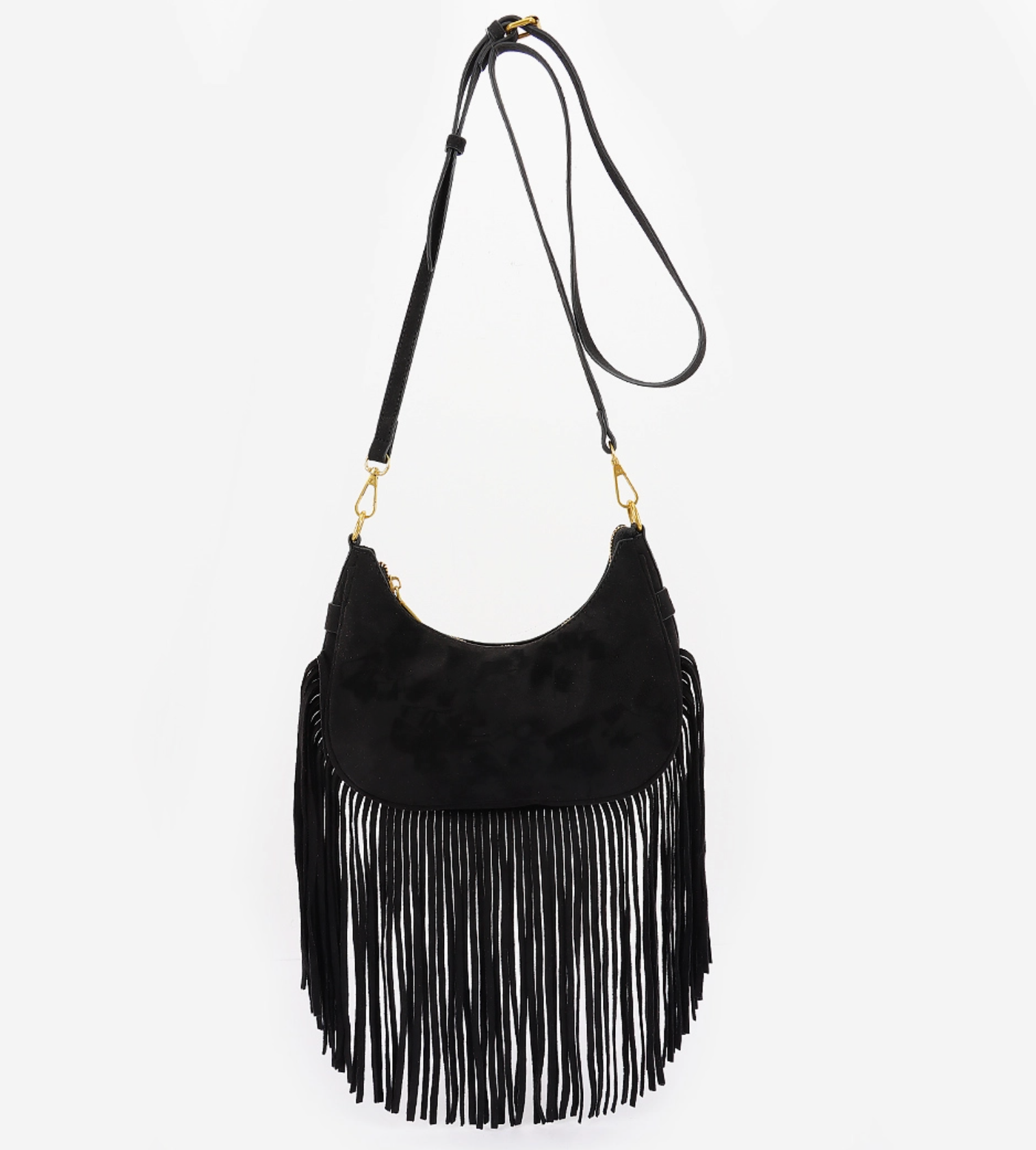 Fringe Trimmed Suede Crossbody Bag Black