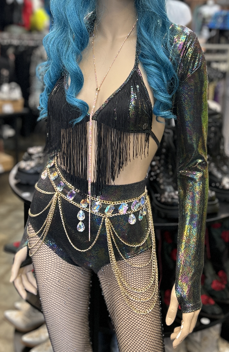 • This shrug is the perfect layer piece for nighttime boogies & frosty mornings.