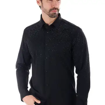 Men's Rhinestone Jewel Long Sleeve Shirt Black/Black