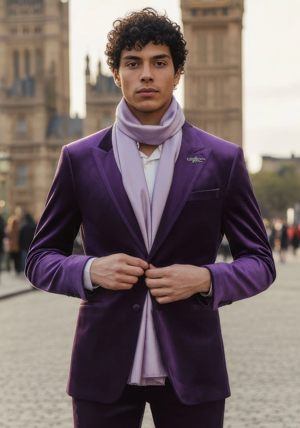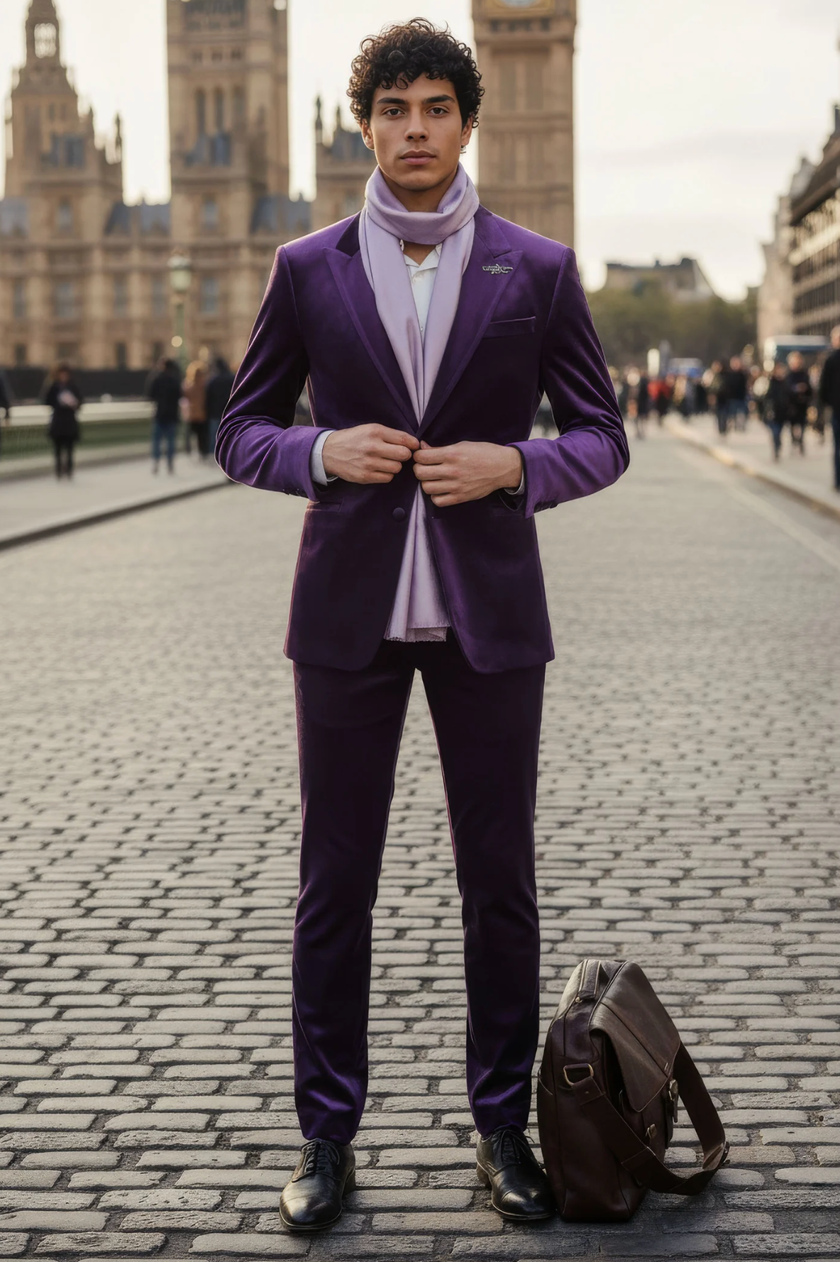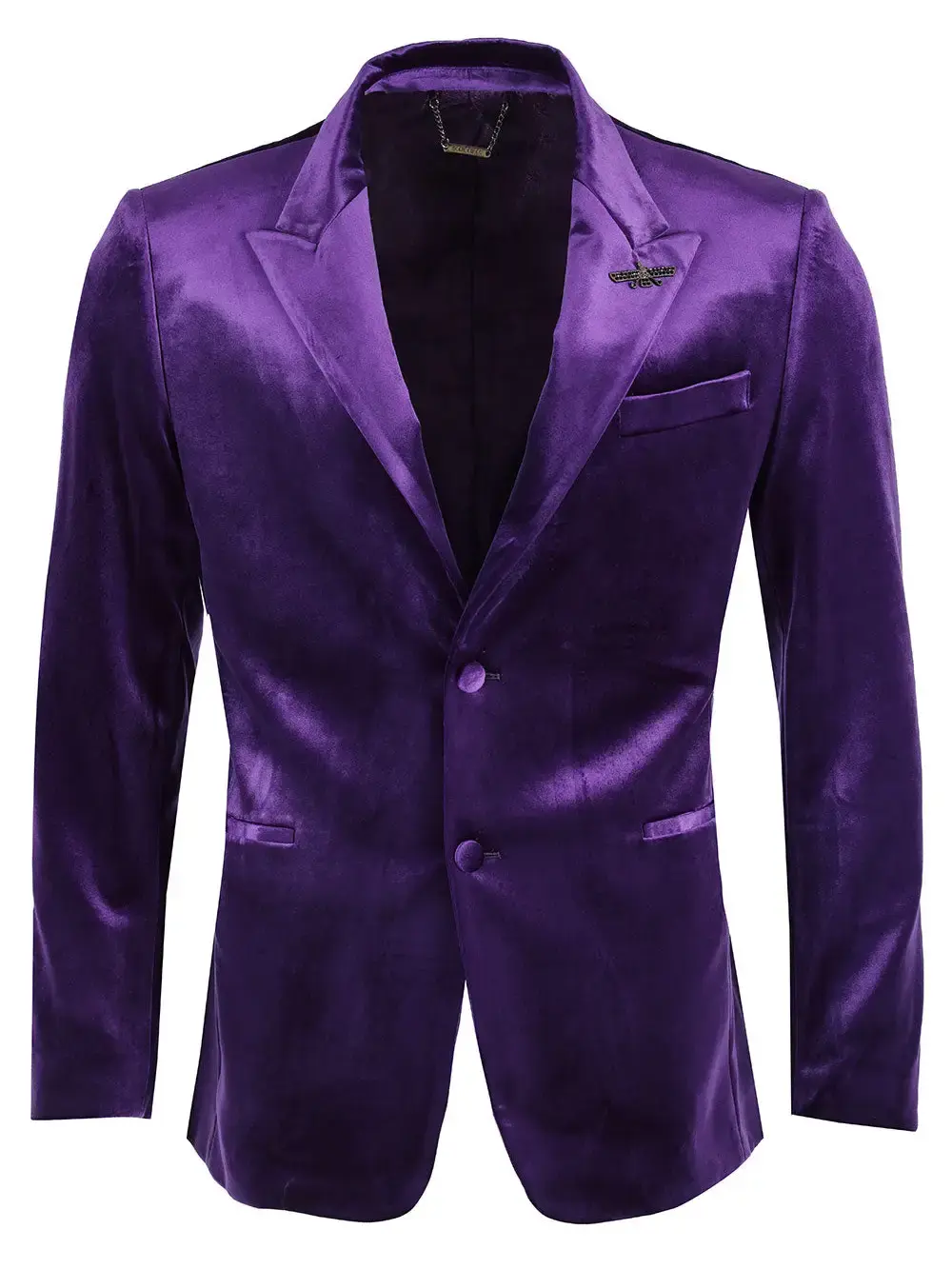 Men's Velvet Shiny Finish Peak Lapel Blazer Purple