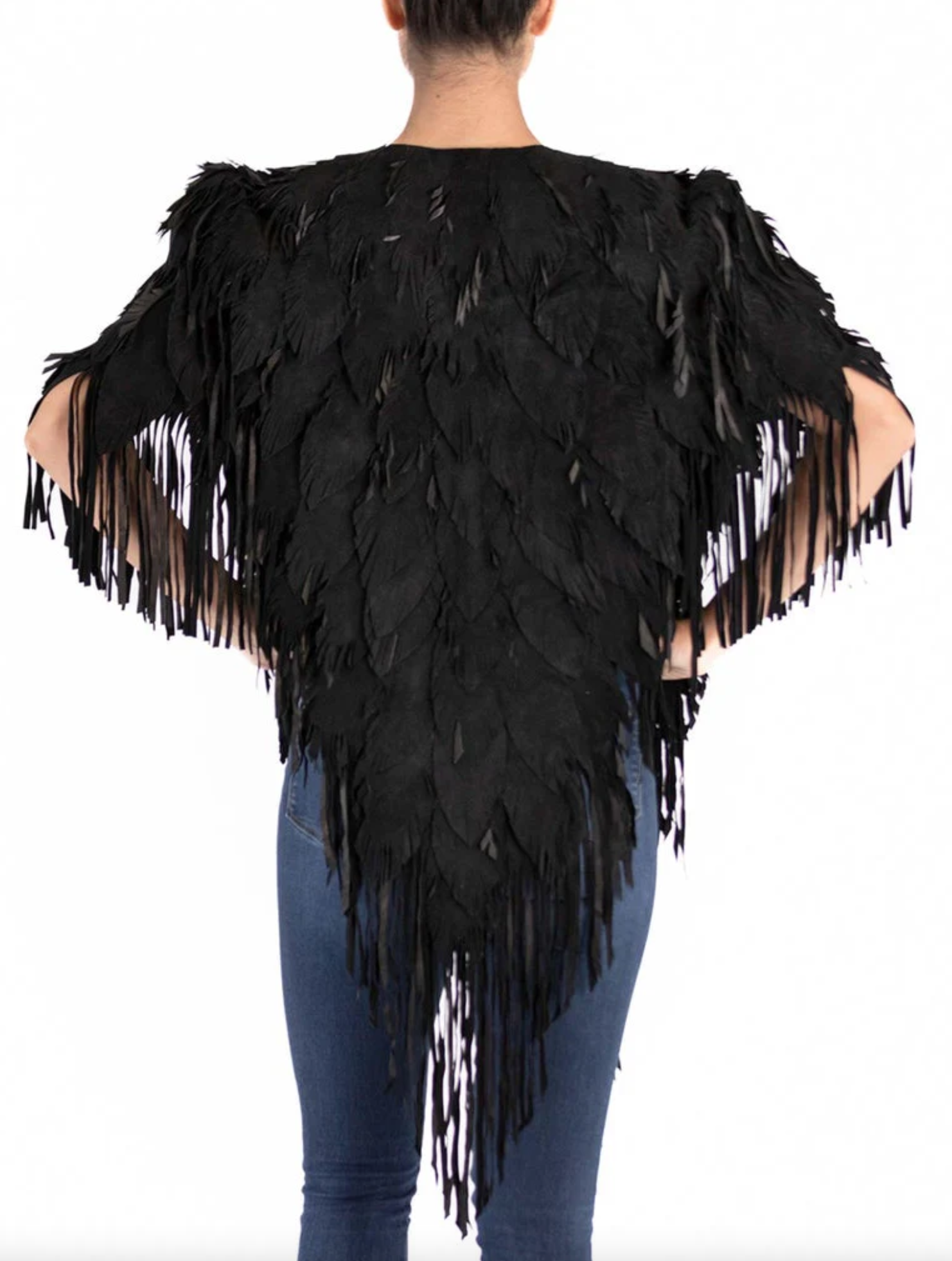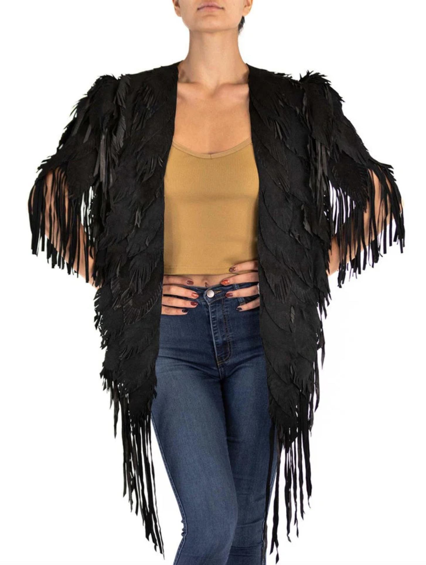 • This feather and fringe shawl style coat is perfect for Burning Man!