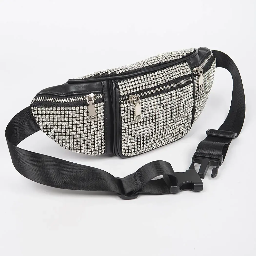 Rhinestone Fanny Pack Black Clear