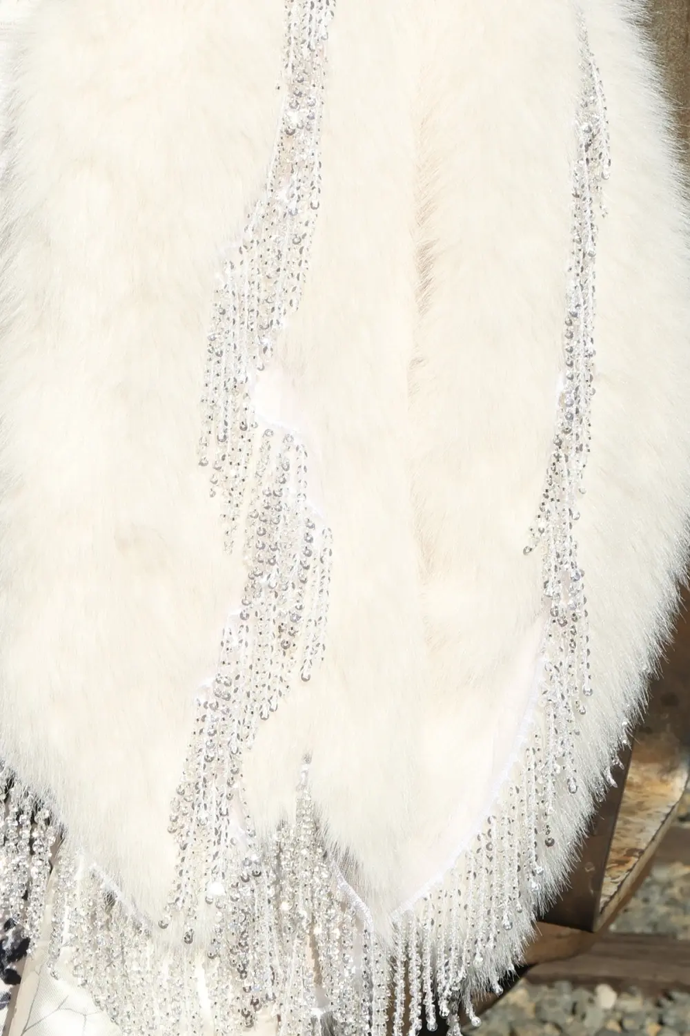 Sequined Fringe Detail Faux Coat White OSFM
