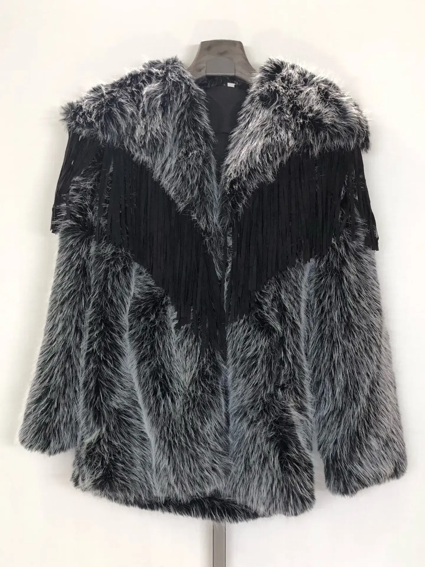 Silver Fox Faux Fur Coat w/Fringe OSFM