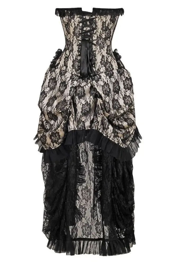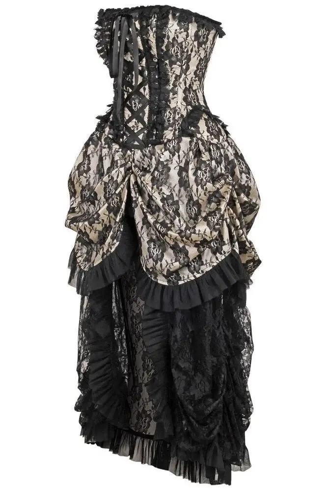 Steel Boned Cream w/Black Lace Bustle Corset Dress