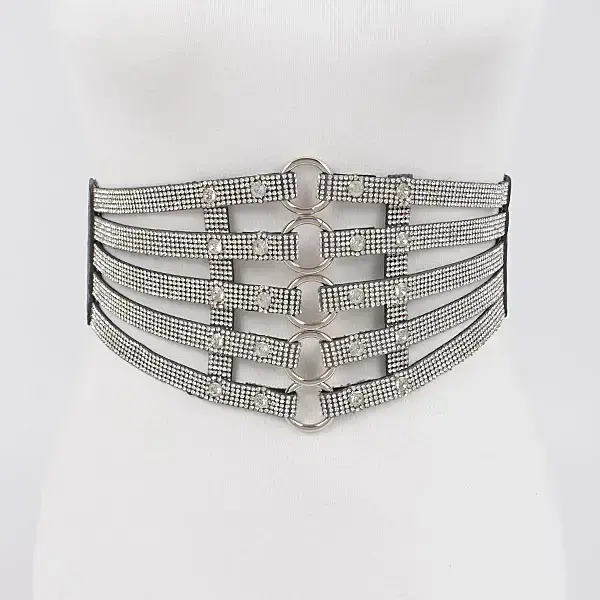 Strappy Rhinestone O-Ring Belt Black & Clear