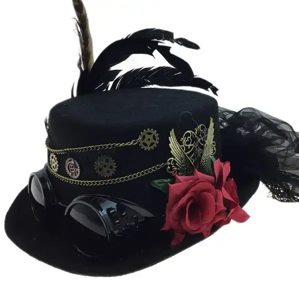 Victorian Steampunk Black Hat with Rose and Goggles