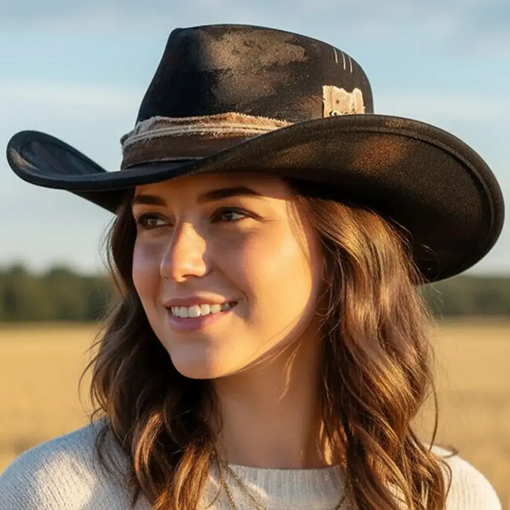 Vintage Versatile Shapeable Cowgirl Hat Black & Brown